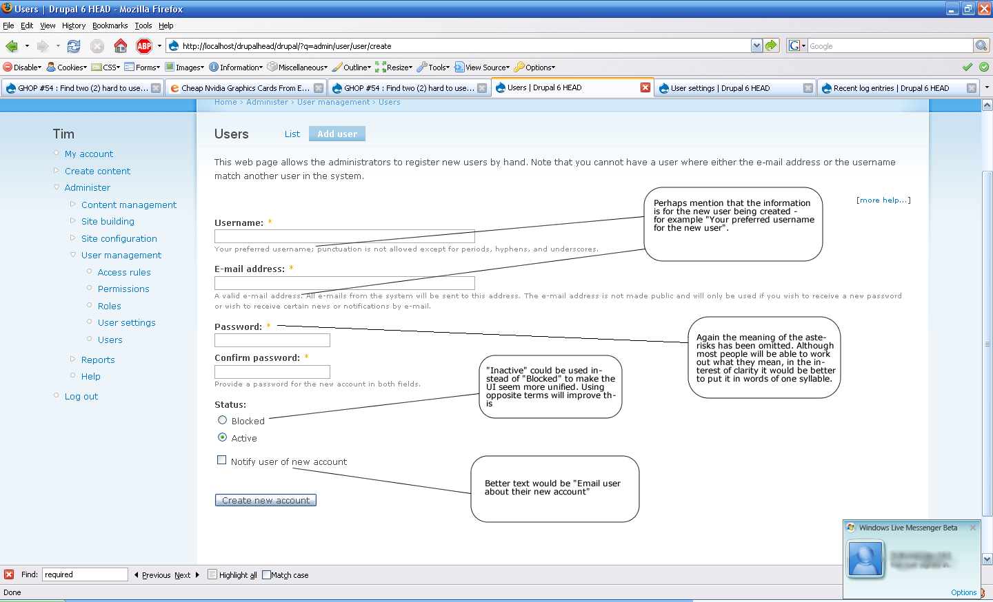 Ever think Drupal is hard to use? The task is to find out where, and to improve it. The task is to find two (2) pages with bad usability, and suggest two ways to improve them.