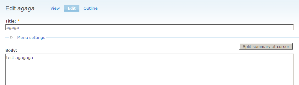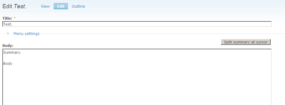 As you can see, you end up with text in an un-split body field, which is not shown in the body on node/view because it's actually the "summary".