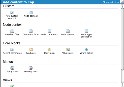 - For the 'Page' content type, let's have an override that shows the content on top, the comments on the middle left panel, as well as some text and a comment add form on the middle right. The bottom won't be used, but don't worry, Panels 2 ignores the parts that aren't used. The first thing to add is the content: