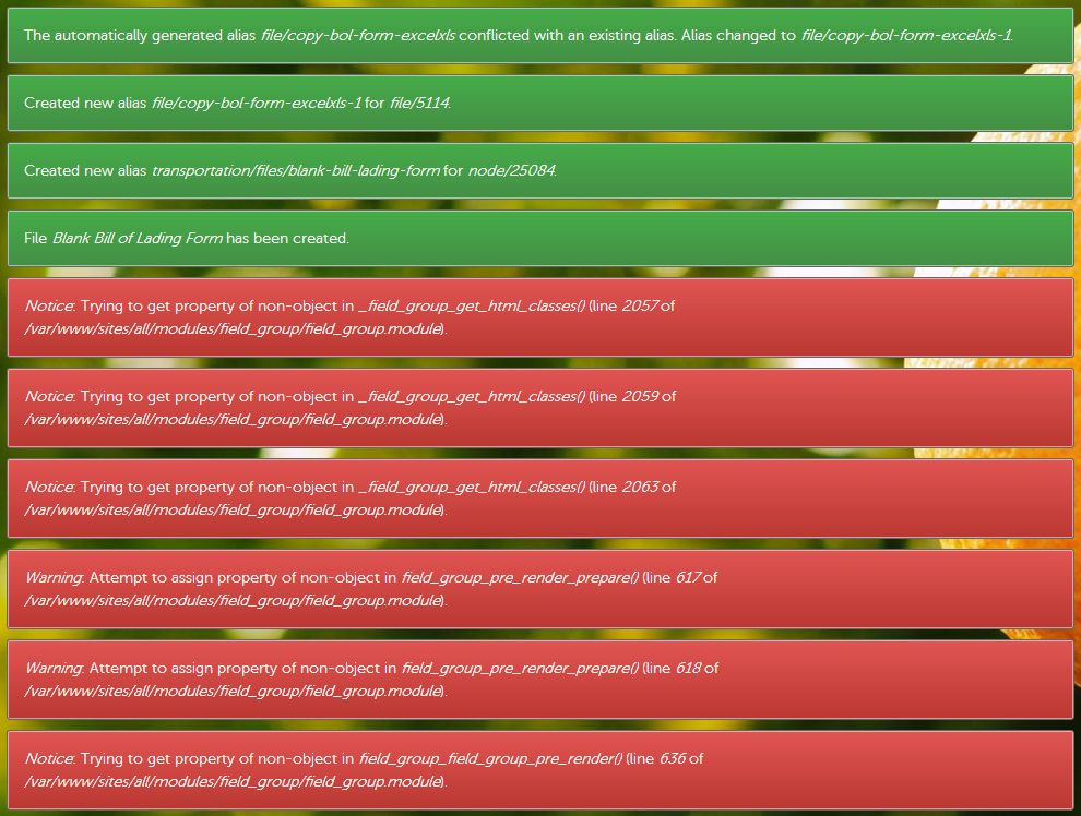 Warning: Attempt to assign property of non-object in field_group_pre_render_prepare() (line 617 of /sites/all/modules/field_group/field_group.module).