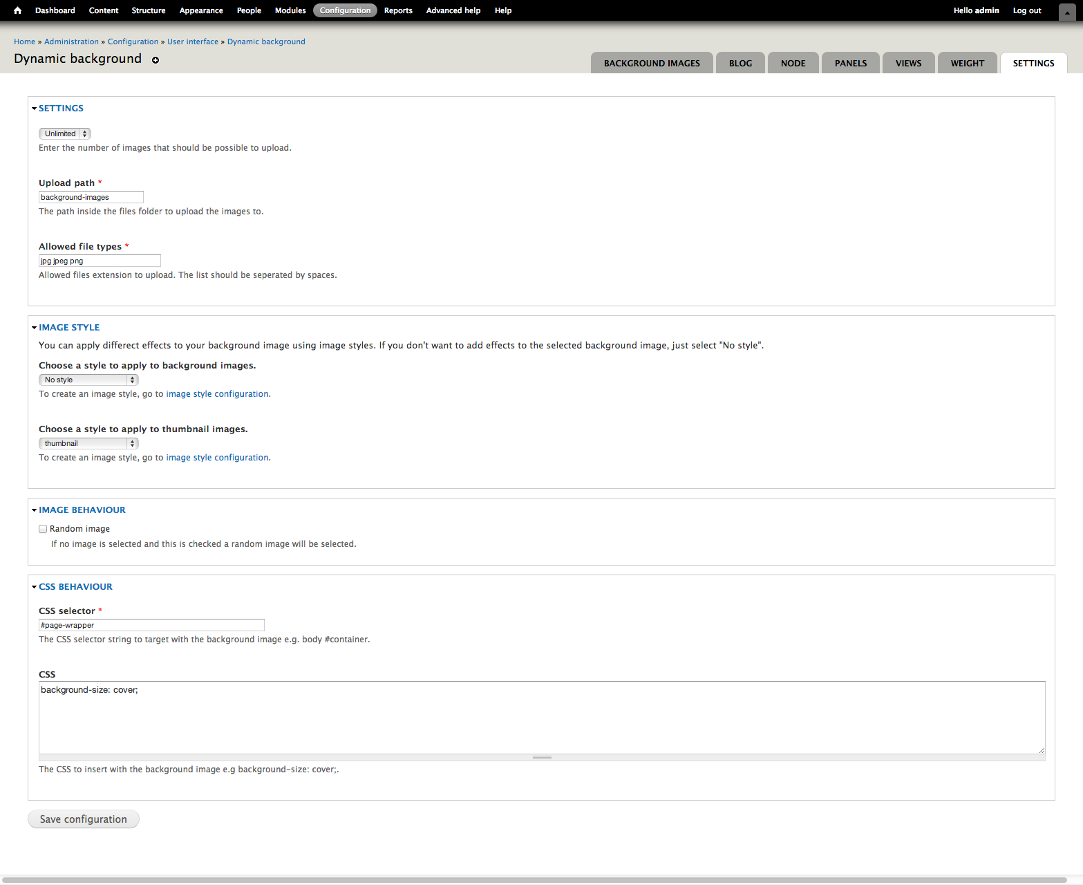 Below you see some screenshot´s of the Dynamic Background-Module.