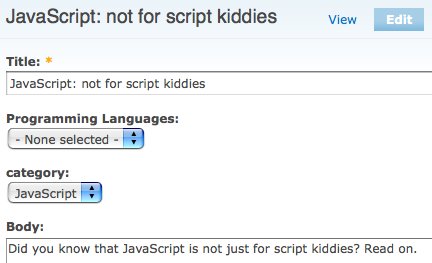 Installation and usage are relatively easy. Upon enabling, CCK Taxonomy Fields would be available on the "Add field" page for a content type, depending on what vocabularies you have defined. Once they are added, they coexist with existing fields provided by the Taxonomy module. Unfortunately, CCK Taxonomy Fields suffers from the same problem Content Taxonomy suffers from: you can add a taxonomy field for a vocabulary that is not meant for a particular content type. However, the author, Robert Douglass, states that this is intentionally designed that way, so that the whole taxonomy mechanism can be sidestepped. In addition to that, you also cannot choose different widgets or act on a freetagging vocabulary, which is something Content Taxonomy can do. Unlike Content Taxonomy, however, CCK Taxonomy Fields simply honors the settings set in core Taxonomy, which is a great plus. This means CCK Taxonomy Fields is a great drop-in module to simply bring core Taxonomy-defined fields into the world of CCK fields.