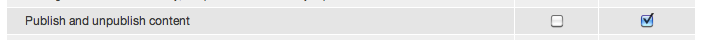 theamoeba commentedI have tested the patch and everything is working. I do not see the publish to front page toggle though. The user can now publish and unpublish content.