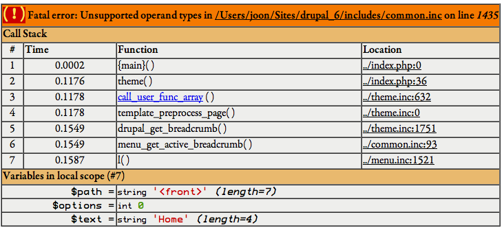 ( ! ) Fatal error: Unsupported operand types in C:\Program Files\xampp\htdocs\d6\includes\common.inc on line 1435