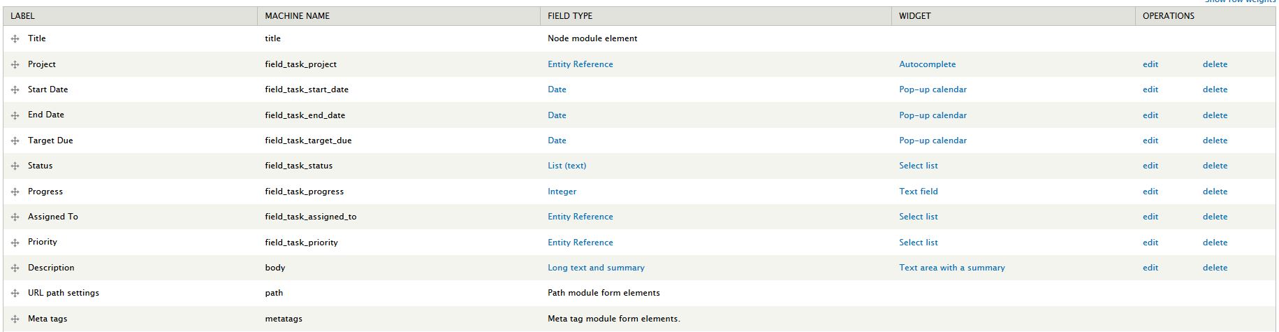 lalbright commentedI have added screenshots of the Task Content Type Manage Fields screen, the views screen, and the views style options for the gantt. Hope this helps. :)