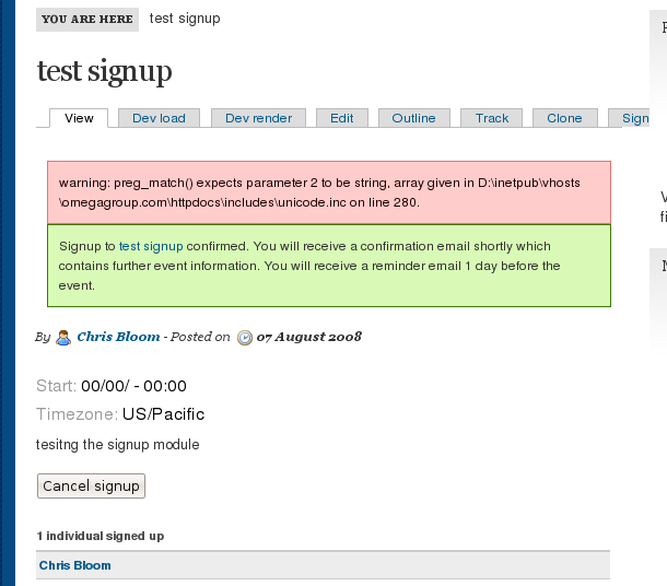 Fatal error: Cannot redeclare theme_signup_user_form() (previously declared in /home/qwo/public_dev/sites/default/modules/signup/theme/signup.theme:50) in /home/qwo/public_dev/sites/default/modules/signup/theme/signup_form.inc on line 71