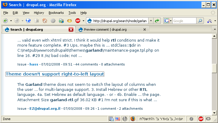 The Garland theme does not seem to switch the layout of columns when the user switches to a right-to=left language such as Hebrew.