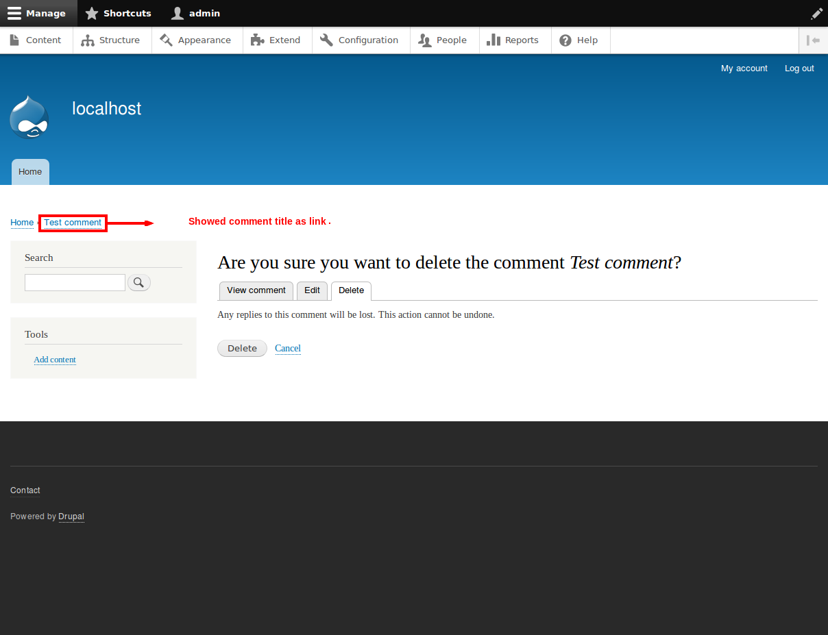 nemethf commentedThe strange breadcrumb link is available on the comment delete confirmation page as well.