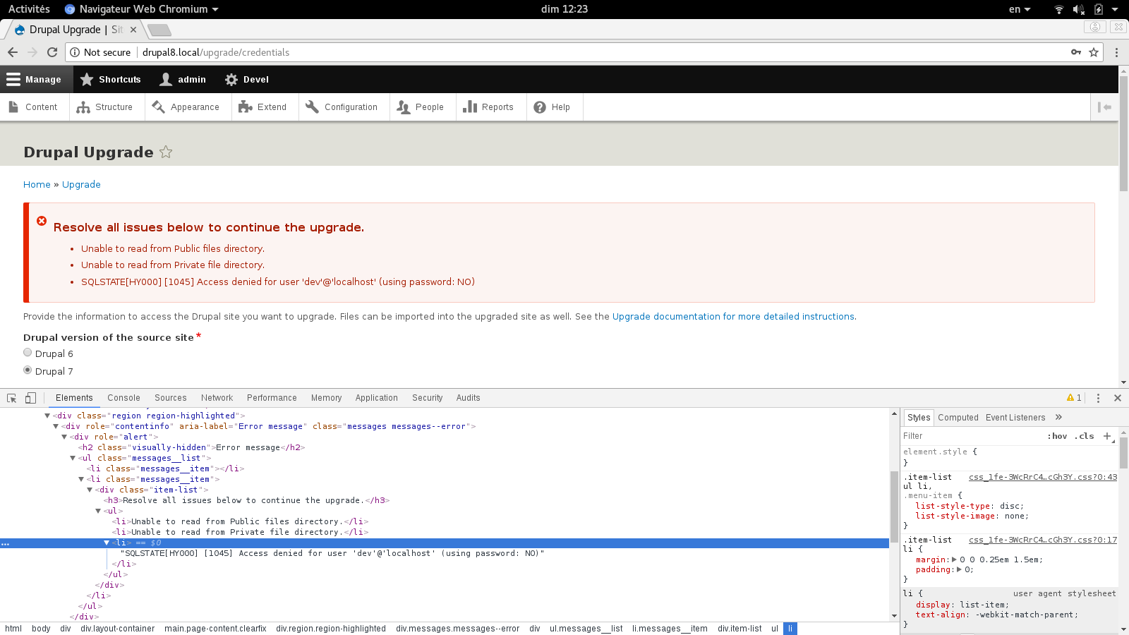 I did some testing and found a way to get a not so nice display of the error messages which also doesn't into the title line 'Resolve the issues ....' It can be reproduced by selecting the wrong drupal legacy version. Only have time to point this out now.