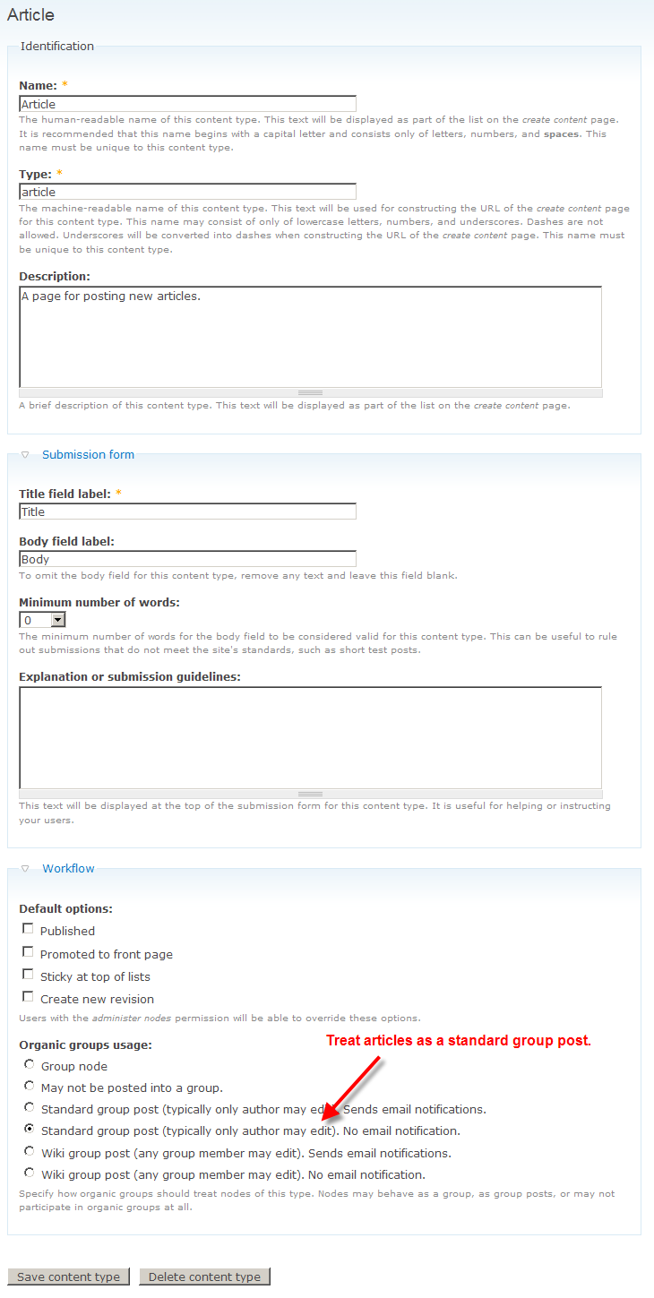 Just to make sure I wasn't seeing anything different, I re-ran the test from before and selected "Create Article" from within the OG rather than the "Create content > Article" option in navigation. This is what I got: