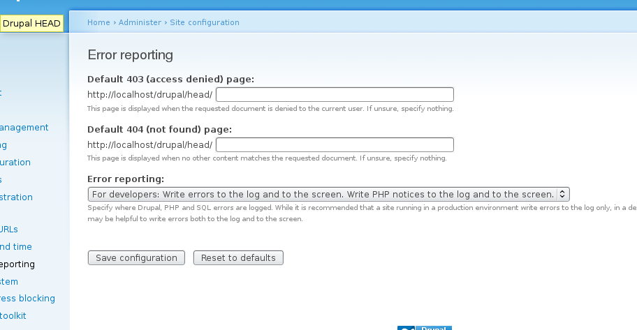 - The error reporting setting is moved to a "settings" local task under admin/settings/logging.
