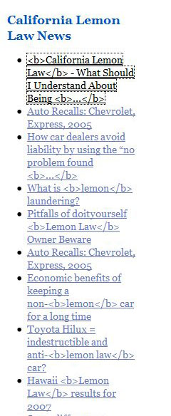 http://blogsearch.google.com/blogsearch_feeds?hl=en&q=California+Lemon+Law&ie=utf-8&num=10&output=rssPost 4 & 5 have pictures.