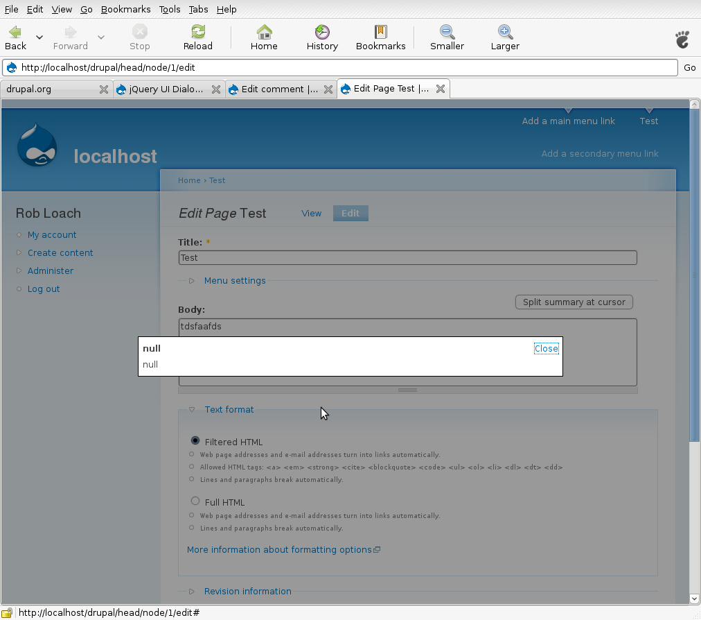 babbage commentedSee also http://drupal.org/node/87994#comment-1782994 for a patch that appears to provide a jQuery UI-based alternative patch to implement the basic popups suggested in this current issue.