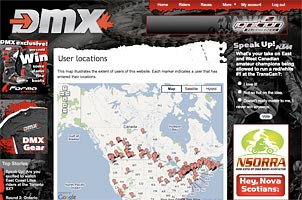 Another of Drupal's strengths is integration with third-party sites, so we wanted to tap into the integration with Google Maps. By using the Location and GMap modules we were able to visually show not only where in the Great White North different stories were unfolding but where motocross fans were, too.
