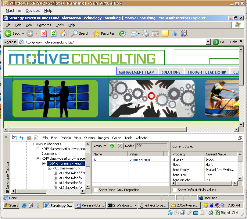 We are experiencing an issue when the first time you visit the website (http://www.motiveconsulting.biz). The navigational buttons are 'floating' off a few pixels from the horizontal images when the home page first loads. The moment you click on the page or hover over the navigation link, the tab jump into the correct location.