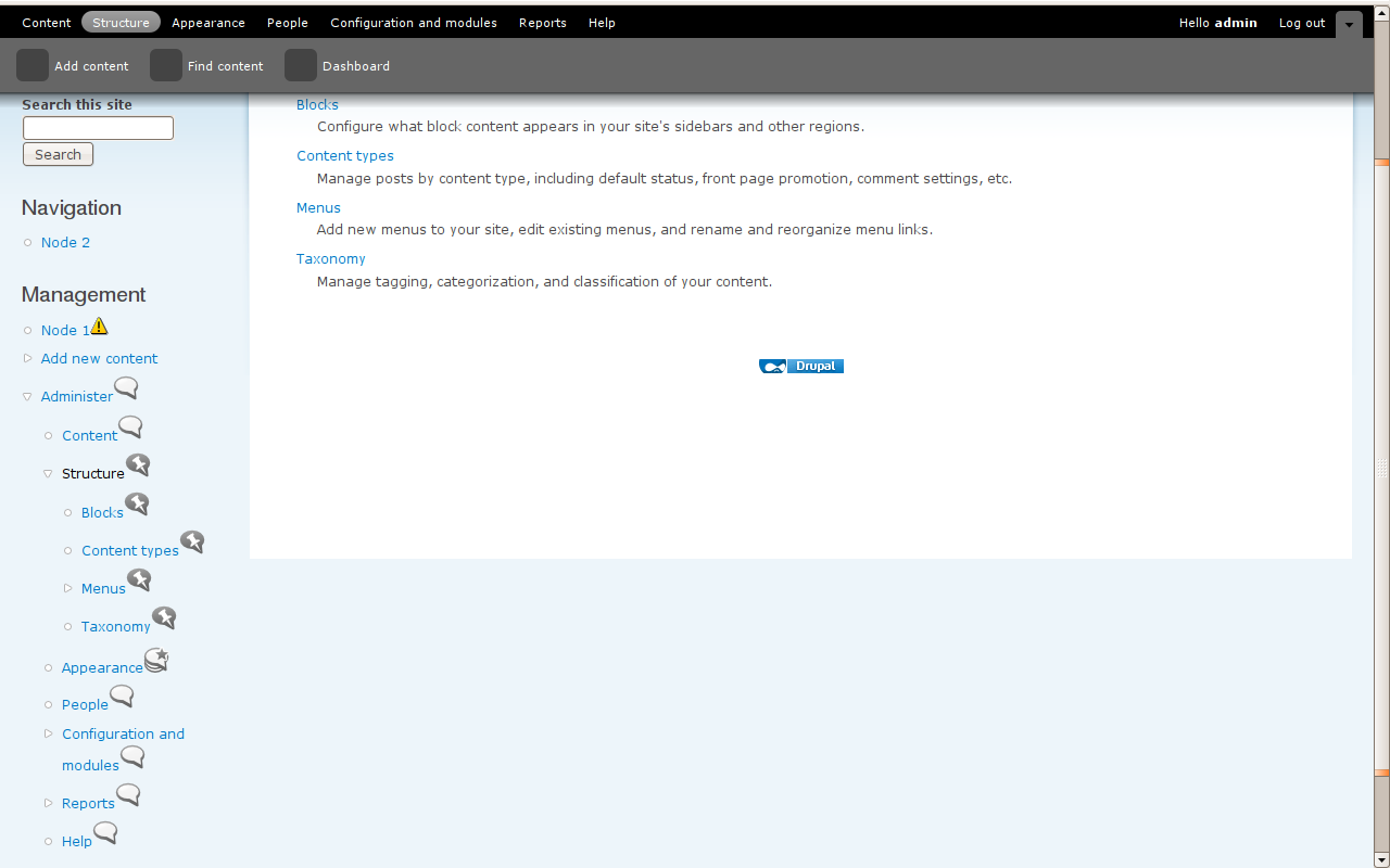 In any case, the attached patch (and screenshot) is a very rough initial implementation of the idea. Don't pay any attention to the theming - it looks quite ugly and I just used some nonsensical icons that already happened to be in core :) However, the basic idea of the patch is that icons can be specified in hook_menu(), inherited by their children if not overridden, and that it is possible to specify on a per-menu basis whether or not icons should be enabled and what image style to use for them (so that, for example, you could say toolbar shortcuts menu uses 60x60 pixel versions of the menu icons, the management menu uses 15x15 pixel versions of the same icons, and the navigation menu doesn't use icons at all).
