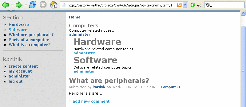 taxonomy_context The taxonomy_context module enables you to display several useful types of information drawn from taxonomy terms. By default in Drupal, when you bring up a taxonomy term you get a list of "node" (stories, static pages, books, etc.) associated with that term--but nothing to describe the term itself. But for organizational websites one often wants to display information like a title and description of the current section. So this module includes several methods for displaying information about taxonomy terms: