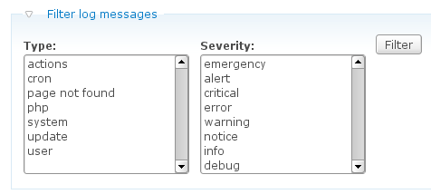 Dblog Filters -> http://drupal.org/files/issues/d7_dlog_filter.png