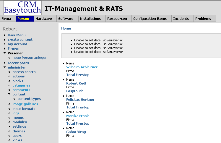 Unable to set date. iso2arrayerror (displayed only 1 time, as I have only one node for testing)