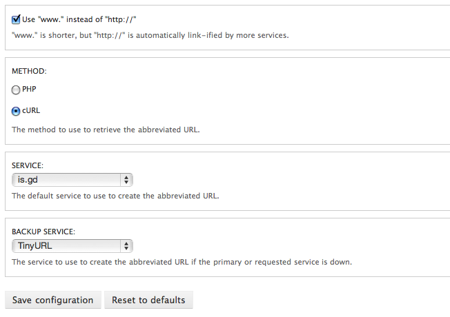 What if we wrote the part of shorturl settings that shorten also has, into the same variables they do - that way whichever interface you change these settings from (if the two are both installed) - the settings will be synced.
