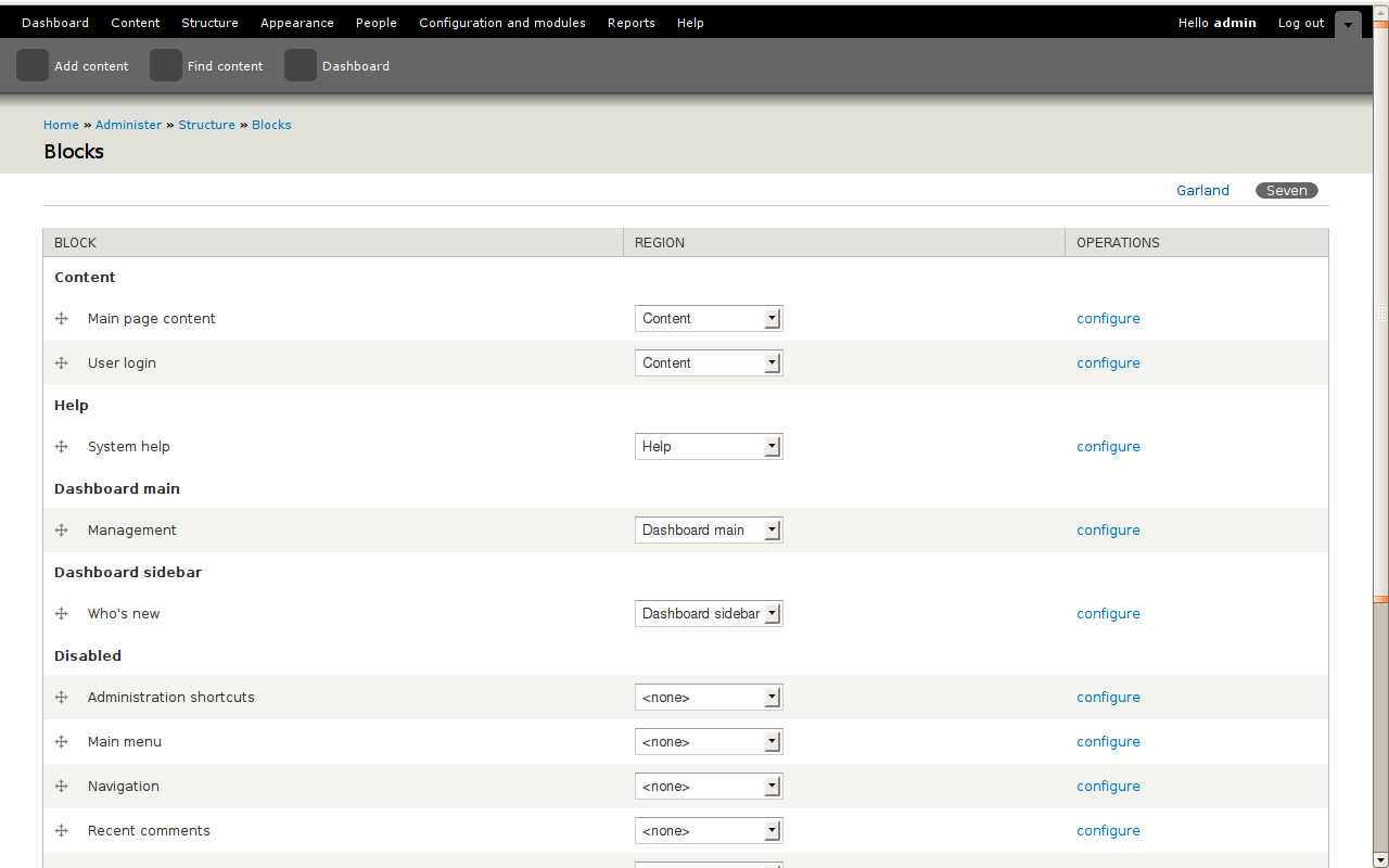 $('#content')I take it that dragging from one region to the other doesn't work yet, and neither does dragging an inactive block into a region?