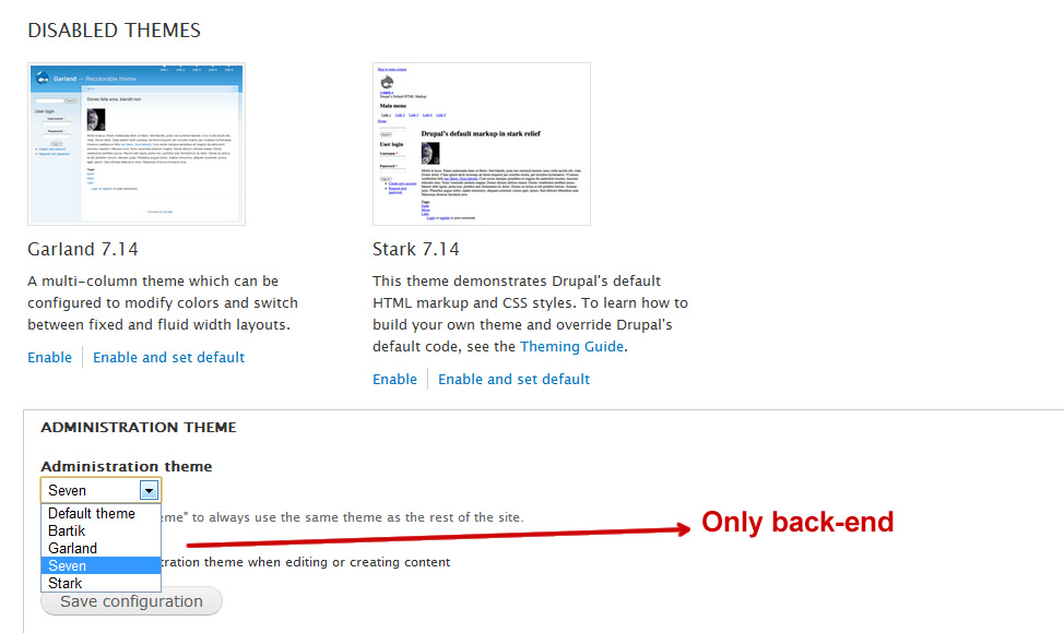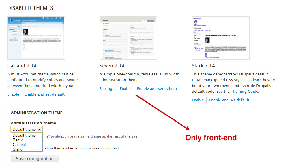 xmacinfoYes, but what do we do for themes that would act only as admin theme? Currently, any theme, including Seven can be set as the front end theme.