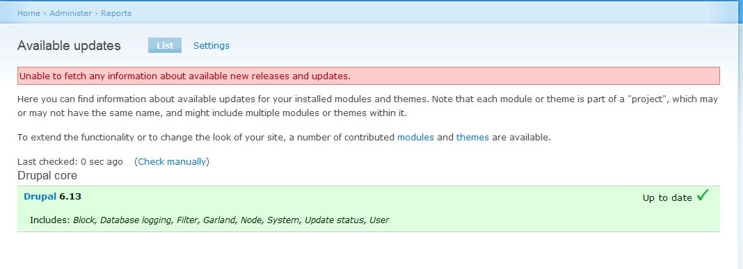 I made a fresh install of D 6.13 with and update fails, even when the ONLY modules enabled are dblog and update
