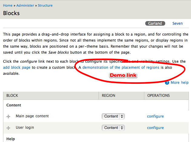 Bojhan commentedCould we demo the regions? So switching this to "Seven" but having a link - Demo block regions.