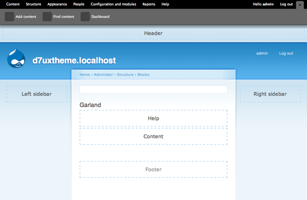 bugpage was showing up in Garland regardless of our admin theme (it inherited its theme callback from the main/default blocks page). This was a mistake introduced with the menu theme callback patch.3. The patch also adds demo pages per theme. These pages do not display blocks or any page content, just the themed page with the block regions highlighted.
