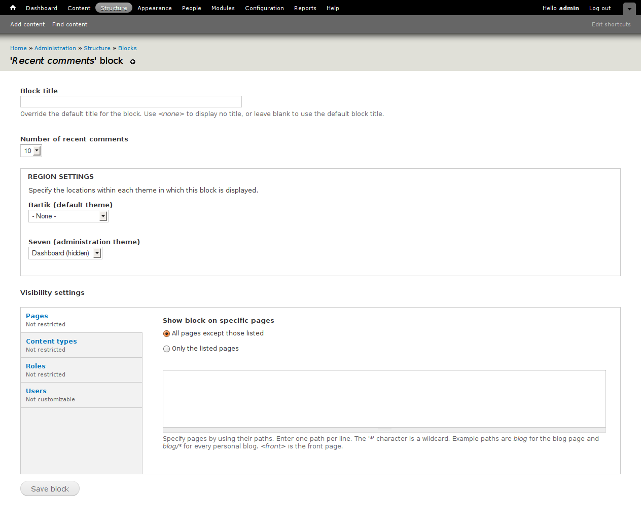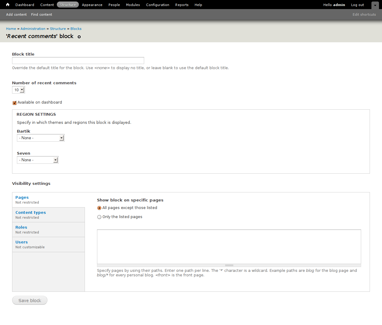 'admin task' => TRUEhowever I think that immediately runs into issues with who's new, who's online - which on different sites might be admin-only or site-facing blocks or both. We can work around this by duplicating lots of blocks, which I think makes sense for some (a recent comments block with edit and delete links on it), but is unlikely to work for everything.Comment #3