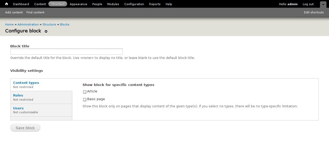 'admin task' => TRUE. So her idea is actually a bit like your category idea, only we'd be limiting the number of categories to two (basically, administrative blocks and non-administrative blocks).Comment #2