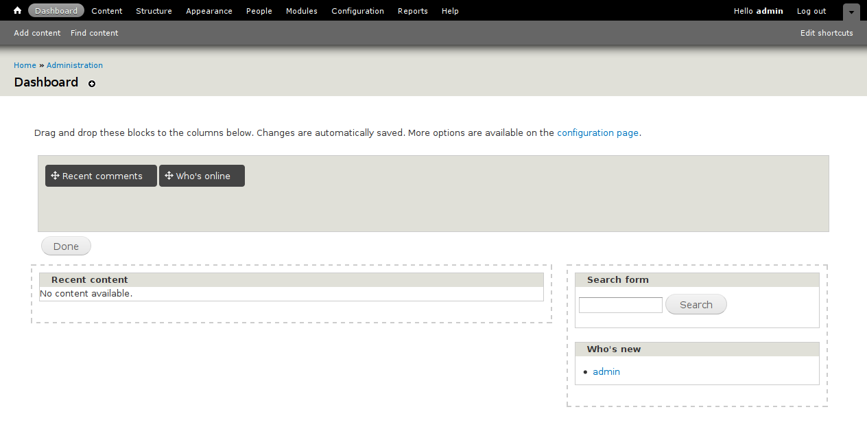 Everett Zufelt commentedOpened #963598: Users who cannot drag and drop require clear anchor text to find Dashboard Administration page