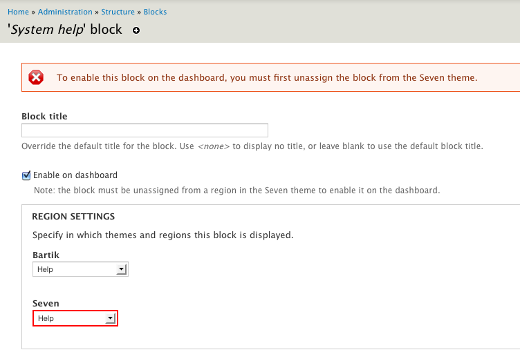 - For any block, the default should be 'do not make available for dashboard'. For core install profiles we want to explicitly mark only a couple of them as available for dashboard.
