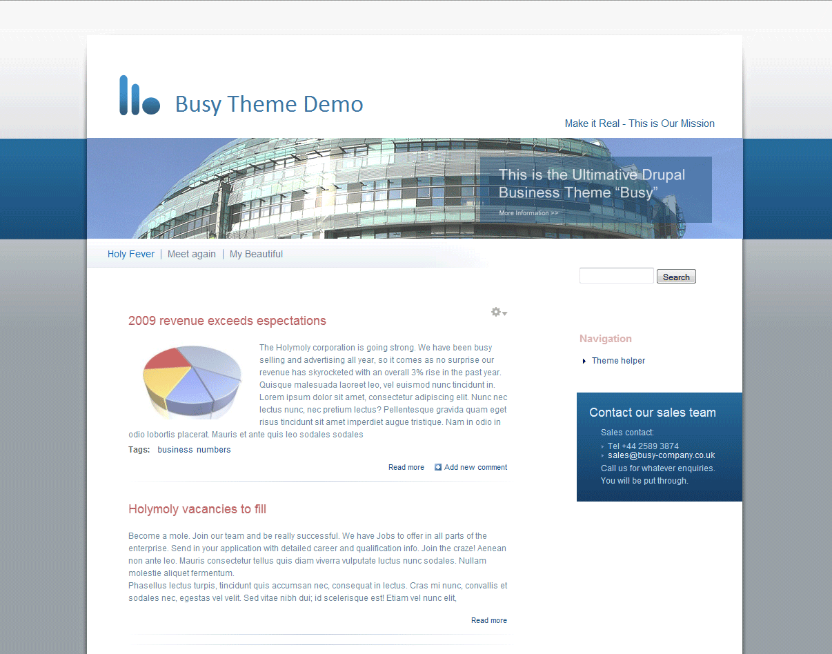 2. This theme is great looking to relative to the crop of drupal themes available, and more importantly its unique in that its targeted at what I feel is a gapping hole in core's offerings: the non-bloggy drupal sites.