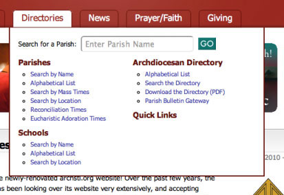 Using mega menus has even allowed us to insert a parish search form directly into one of the menus. As this is one of the most frequently used features on the site, it should help save a little time for many users.
