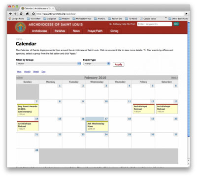 Another nice feature of the Calendar module is the ease of creating iCal-compatible calendar feeds. You can simply click the icon, and subscribe to the Archdiocesan calendars.