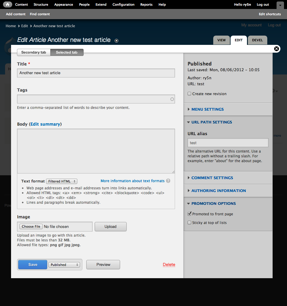 yoroy commentedI'm not happy with this yet myself and would like to refine this. Mainly because compared to the primary tabs, I switched around the visual vocabulary for 'acitve' and 'normal': active primary tabs are black text on white, right now, active secondary tabs are white on dark gray.