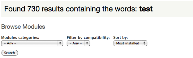 In order to make it easier to find projects on Drupal.org, the redesign emphasizes project-based search forms in project sections and search results. For example, people should be able to sort the main modules page for Drupal 7-only modules. The project and Solr developers decided to abstract out their search forms to be re-used in the Download and Extend sections as well as for project-based search results.