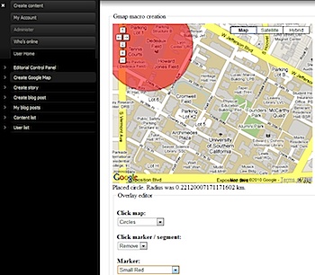 Many news stories have a geographic element that can be useful to display as part of the story, linking related stories over time in order to see trends. The social news platform uses the Google Maps module to allow editors to set custom markers, default map position, size and zoom for Google maps. This custom mapping is completed via a browser window from within the social news platform. When the editor has completed the map creation process, the attributes for the map are captured and stored as part of the story node. The map is then displayed to readers as part of the story package.