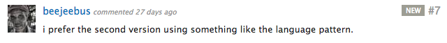 - Distinction between information - The proposed design allows for a clearer distinction between user (picture, name/time) information and comment meta information (reply, report, edit, new, permalink). This meta information isn't "non-important" but simply just secondary to "Who posted this comment and what do they have to say".