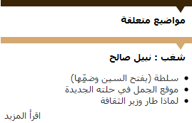- Content recommendation: on each node, aljaml.com displays a collection of suggested nodes, each of three nodes, chosen by taxonomy, without repeating any node more than once. This was done by a custom node_suggestions module created especially for the project.