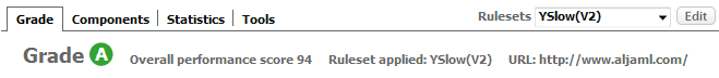 Yahoo! YSlow produced an amazing Grade A, with a score of 94 on the V2 ruleset, and score of 100 on the small site/blog ruleset.