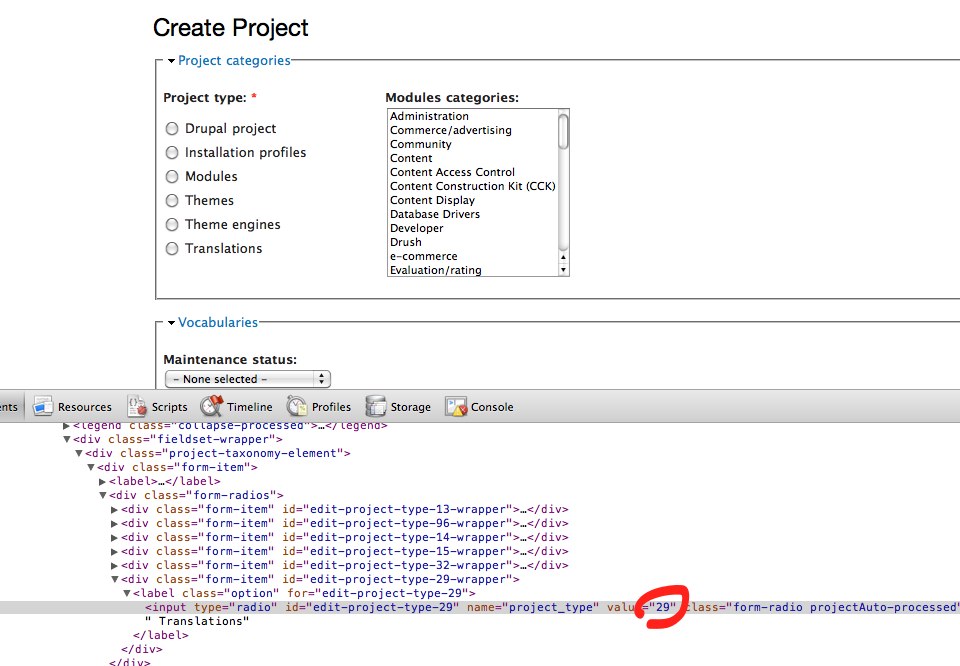 mr.baileysYes, I was incorrectly assuming that, when using the drupalorg installation profile, the vocabulary term IDs would match those on drupal.org, which as it turns out is not the case :)