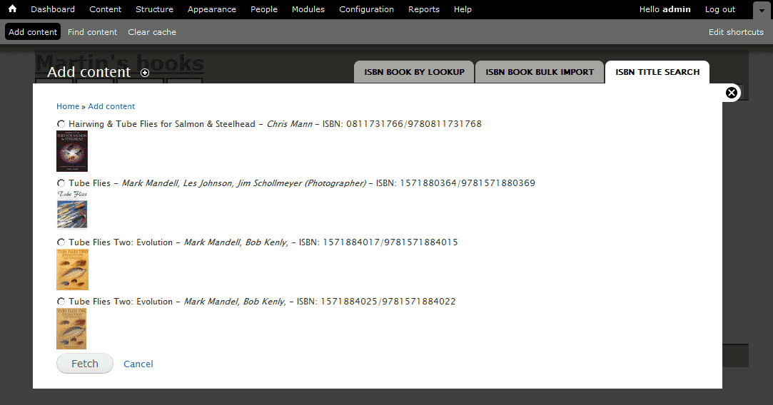 - a basic ISBN-based book content type (not to confuse with Drupal's own book content type).