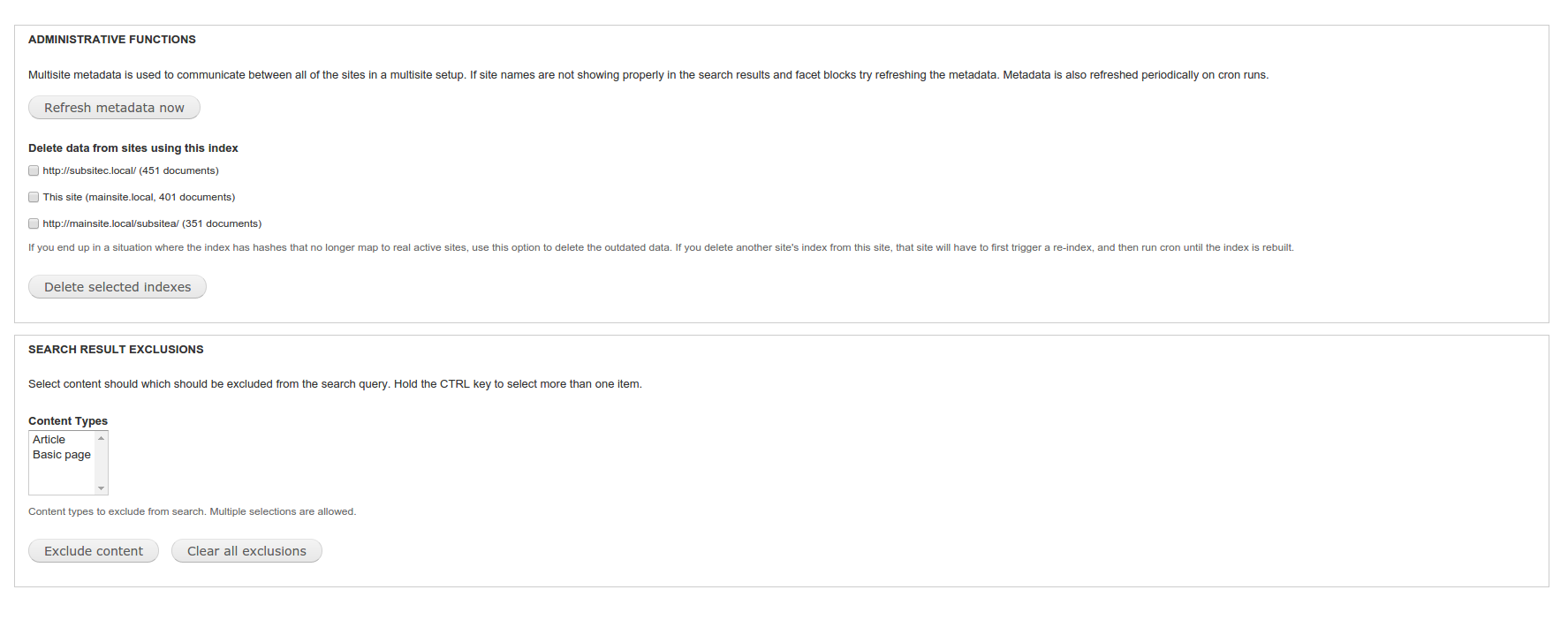 all of them share the same code base but each has its own database. In each of them I've configured a multisite index (localhost jetty solr instance - 3.6.2) and I've generate some test contents and indexed.