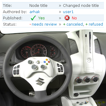 This API exposes the so called driven properties, which are aimed to map any type of node properties (i.e. title, body, taxonomy, CCK fields, workflow, etc).