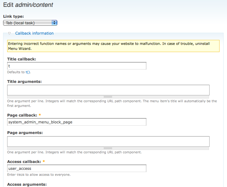 Menu Wizard allows you to edit all menu items defined by modules like you can do with hook_menu_alter() and hook_admin_paths_alter() (Drupal 7 only), but without coding your own module.