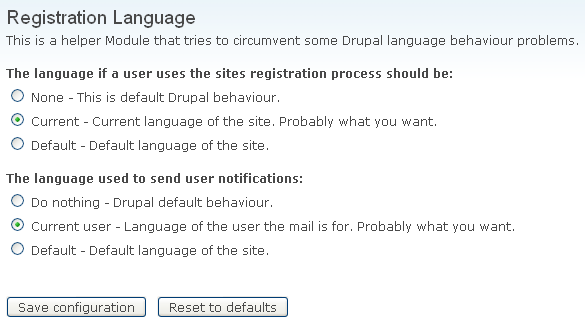 The idea for this module comes from issue #163165. I just don't like how Drupal behaves and so I made a module to address that issue. But there were some more ideas / issues it might solve and I did extend it a bit further so we can make sure Drupal uses the language for emails and content we think is more fitting for the situation, The name "Registration Language" is a bit misleading now but as I can't delete modules from cvs that easily and just have to give it a name I will stick to it. "Language behavior settings" maybe a more fitting name for the module.