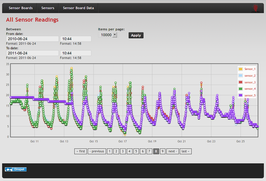 This module will set up data structures to represent Sensor Boards, Sensor Board Data, Sensors, and Sensor Readings. It also provides code that will parse Sensor Board Data nodes into Sensor Reading nodes. For example, if your Sensor Board is emailing sensor data to a webserver, you can use the Mailhandler module to import those emails into Sensor Board Data nodes and the Sensor Hub module code will parse the data into Sensor Reading nodes.