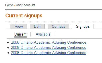 Now, if I got to a users "Current Signups" : ?q=user/xx/signups .. the same event shows up three times!